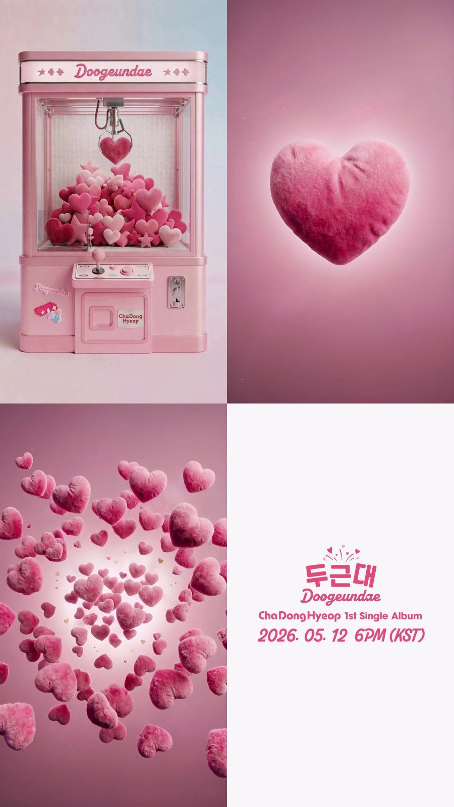 公開された映像にはハートで埋め尽くされたピンク色のクレーンゲームが登場した。機械の中から取り出された大きなハートがいくつかに割れ、ワクワク感を演出した。映像の末尾では「두근대」というアルバム名と「2026. 05. 12. 6PM」の文字が公開され、期待感をさらに高めた。