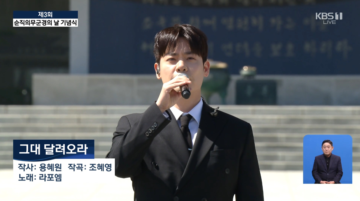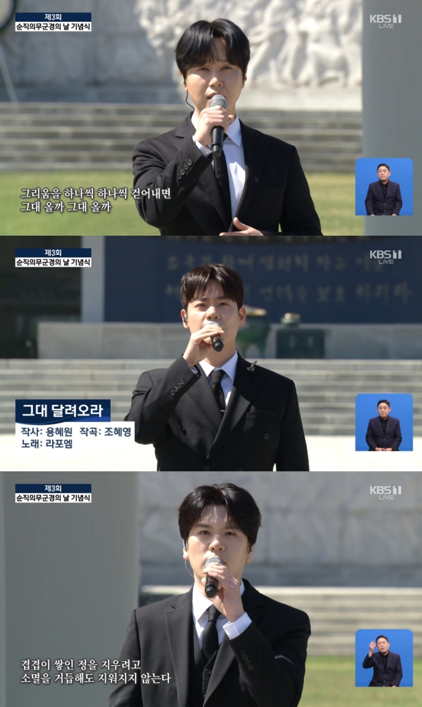 この日LA POEMは、2023年に発売したオリジナル歌曲アルバム「시·詩·POEM」のアルバム収録曲「그대 달려오라」を披露し、殉職軍医軍警への追悼と敬意を込めた舞台を完成させた。国家行事でオリジナル曲を歌い、独自の音楽性とアーティストとしての個性を示した。