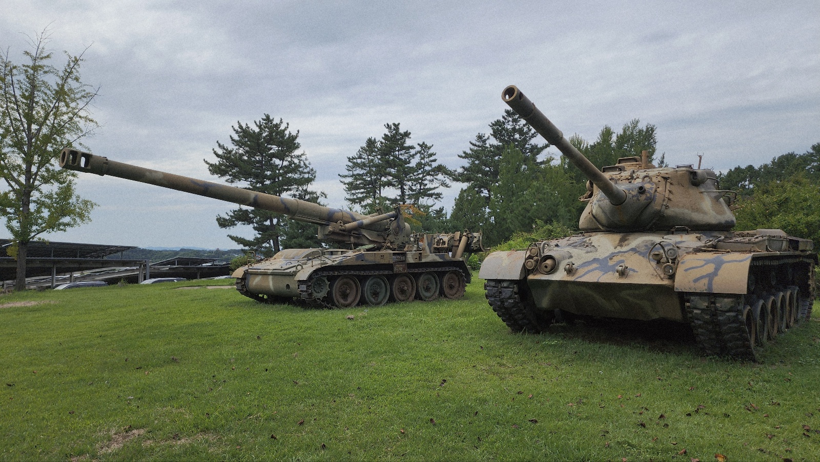 なだらかな坂道の両脇には、戦車の展示やキリスト教徒のための協会、仏教徒のための寺院、スーパーマーケットがある。