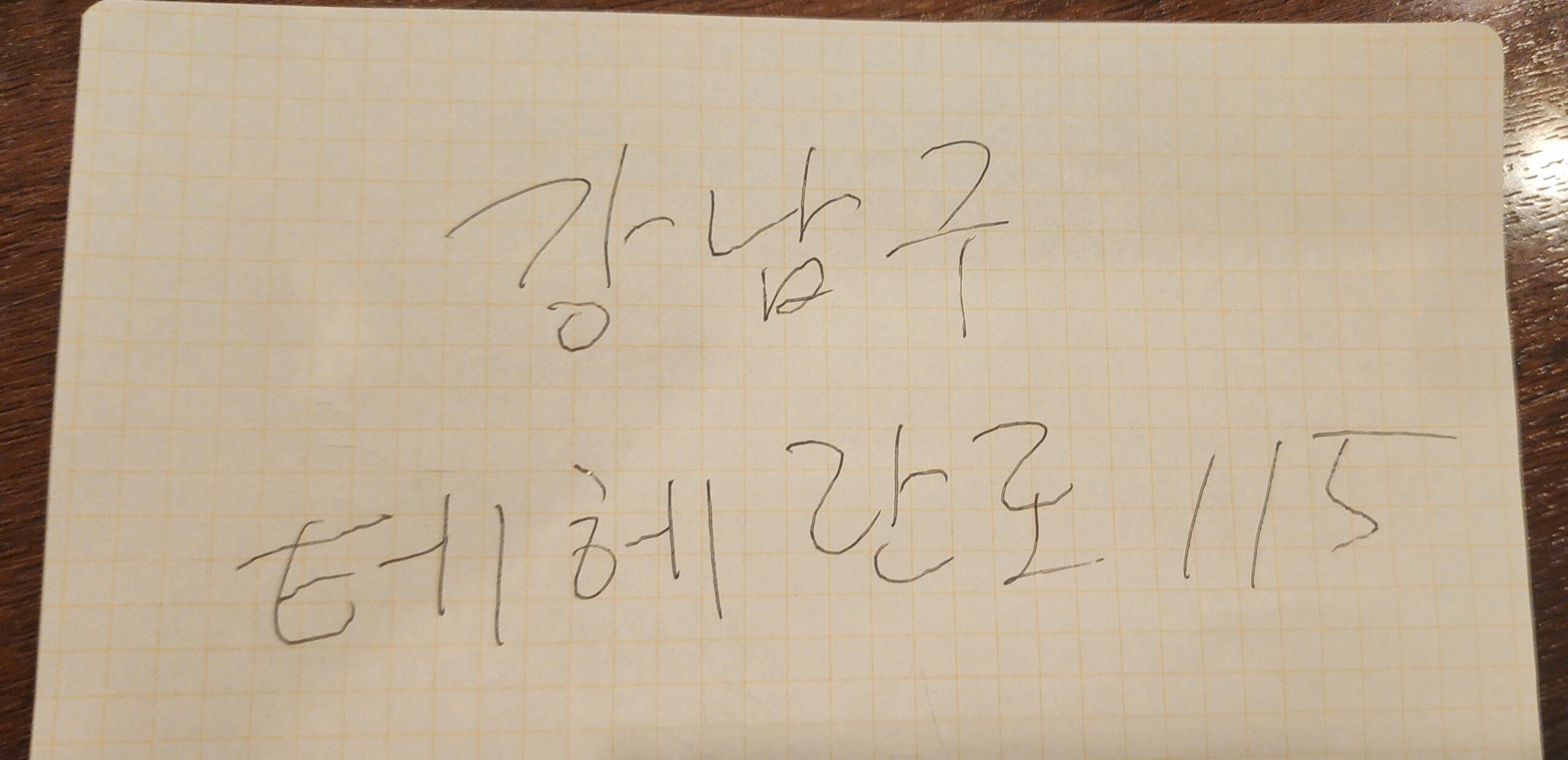 他でもない。このメモを、運転手さんにお見せください。私がハングルで書き記しました。