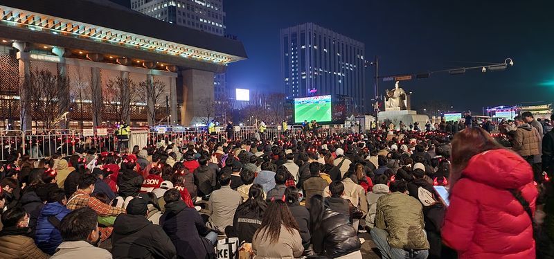 以下、現地のイメージ。2022年11月のサッカーW杯時に光化門で行われたパブリックビューイング時のもの。筆者撮影。